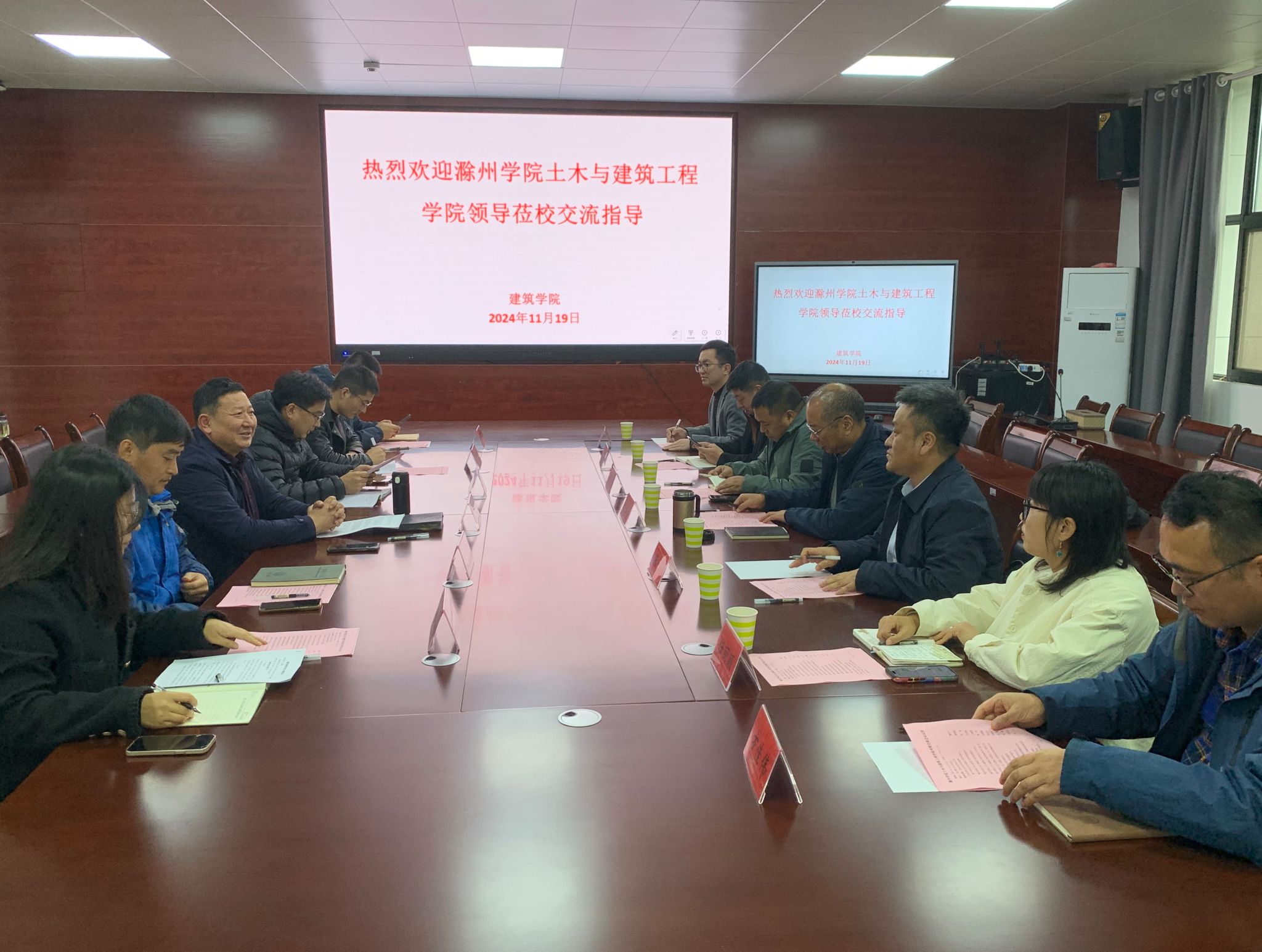 11月19日下午,滁州学院土木与建筑工程学院院长戴仕宝等一行7人来校考察交流,建筑学院院长张远兵等接待了戴仕宝一行。