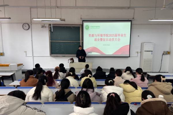 12月25日中午,资源与环境学院在求知楼A106教室召开2025届毕业生就业暨征兵动员大会。学院党委书记沈树周出席并讲话,学院有关教师和2025届全体毕业生参加会议,会议由党政办主任吴国良主持。