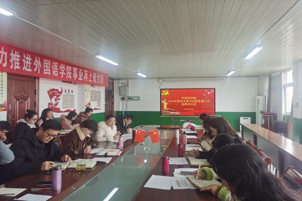 3月5日下午,外国语学院在学院会议室召开2024年度党支部书记抓党的建设述职评议考核会。学院党委委员,各党支部书记、支部委员、师生代表参加会议。会议由学院党委书记蔡为青主持。