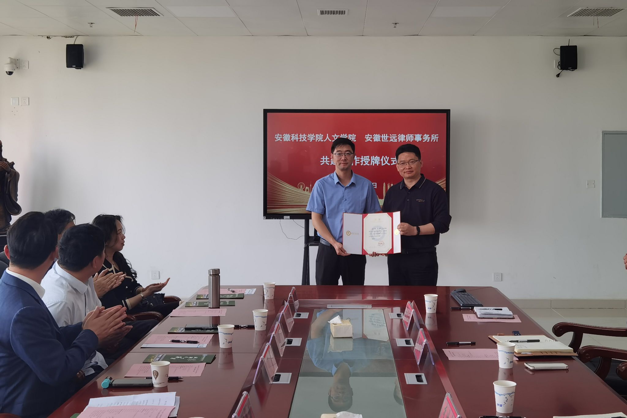 4月16日下午,人文学院与安徽世远律师事务所举行共建合作授牌仪式。安徽世远律师事务所执行主任段永梅,安徽世远(合肥)律师事务所主任程聪等一行,学院党委副书记、院长李晓东,副院长牛永辉,党委副书记李沙娜出席,学院部分教师代表参加。仪式由牛永辉主持。