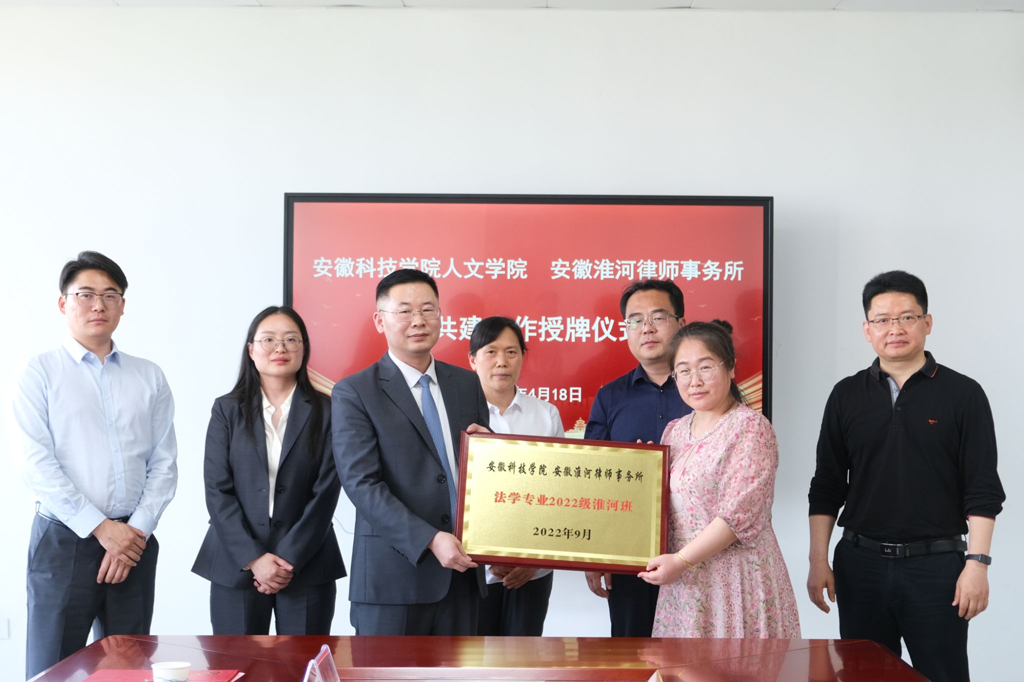 4月18日下午,人文学院与安徽淮河律师事务所在人文学院313会议室举行共建合作授牌仪式。安徽淮河律师事务所主任尹现波一行4人,人文学院党政领导班子成员和教师代表出席。仪式由副院长牛永辉主持。