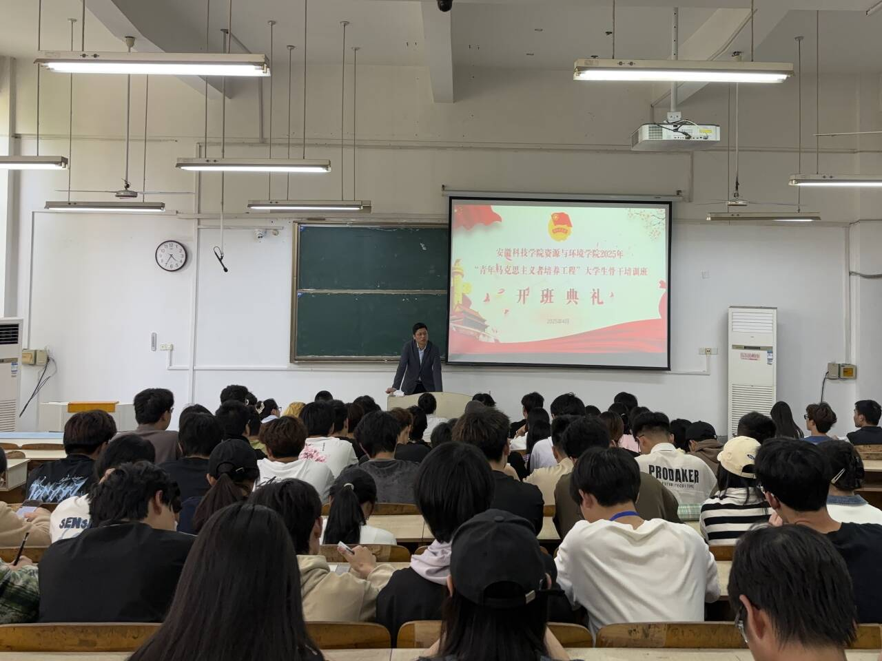 4月23日下午,资源与环境学院在求知楼A102教室举办2025年“青年马克思主义者培养工程”大学生骨干培训班开班典礼。学院党委书记沈树周出席并讲授第一讲,全体辅导员、团委委员、学生会成员、24级班委参加典礼,典礼由团委书记杨小晗主持。