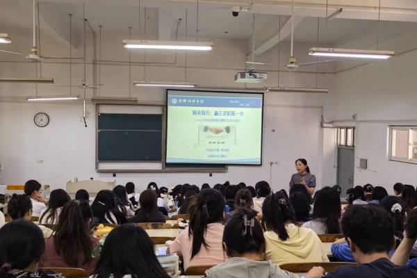 为进一步提升学生就业竞争力,4月28日下午,外国语学院在求知楼A座107教室举办求职就业讲座。讲座由学院党委书记蔡为青主讲,2022级英语专业全体学生参加。