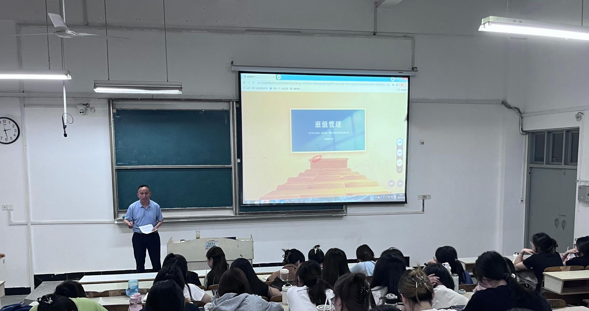 汪宏结合自身三十多年的教育实践经验,分享了班主任工作的宝贵理念和方法。他首先明确了班主任的角色定位,指出班主任不仅是学生的第一责任人,更是他们成长路上的重要引路人,鼓励同学们勇于承担班主任工作,在实践中不断提升自我。其次,在班级管理方面,他提出“管”与“理”相结合的理念,既要通过规则规范学生行为,又要以柔性劝导的方式关怀学生成长,做到刚柔并济。最后,他结合工作中的实际案例,总结了处理问题的关键原则:保持端正的态度、稳定的情绪,做到就事论事、冷静应对。汪宏的分享帮助学生意识到教师应以平和的心态和积极的情感面对工作,在关爱学生的同时,也要学会保护自己,实现师生共同成长。