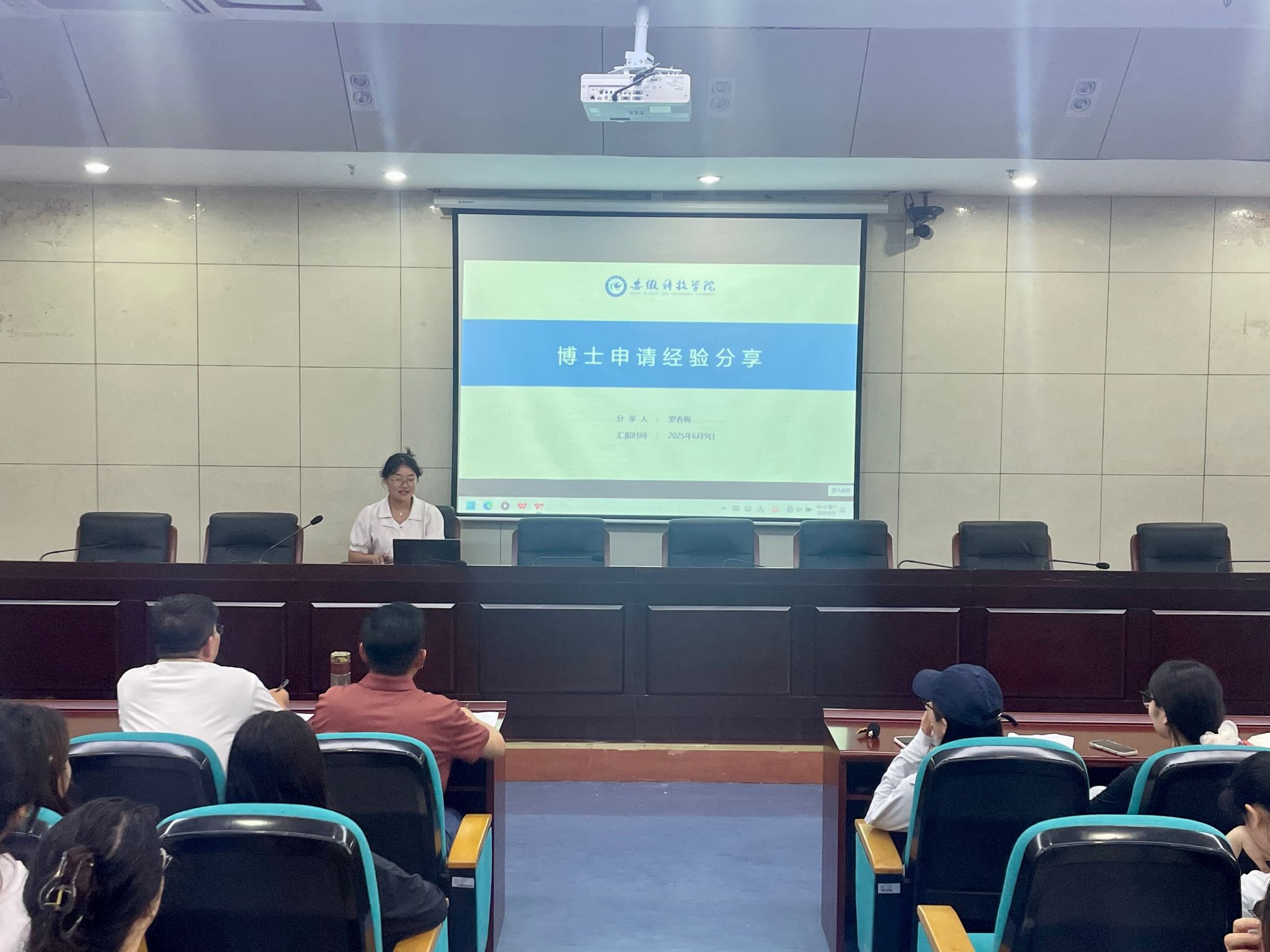 成功升博的研究生毕业生代表罗春梅、钱丽娟、杨婷婷分别从博士招考类型、基本要求、专业学校选择、导师选择联系、申请流程、面试考核等细致入微地介绍了申博历程,分享了感悟感想,并号召与会同学们重视科研积累、科研成果凝练、英语四六级学习等。