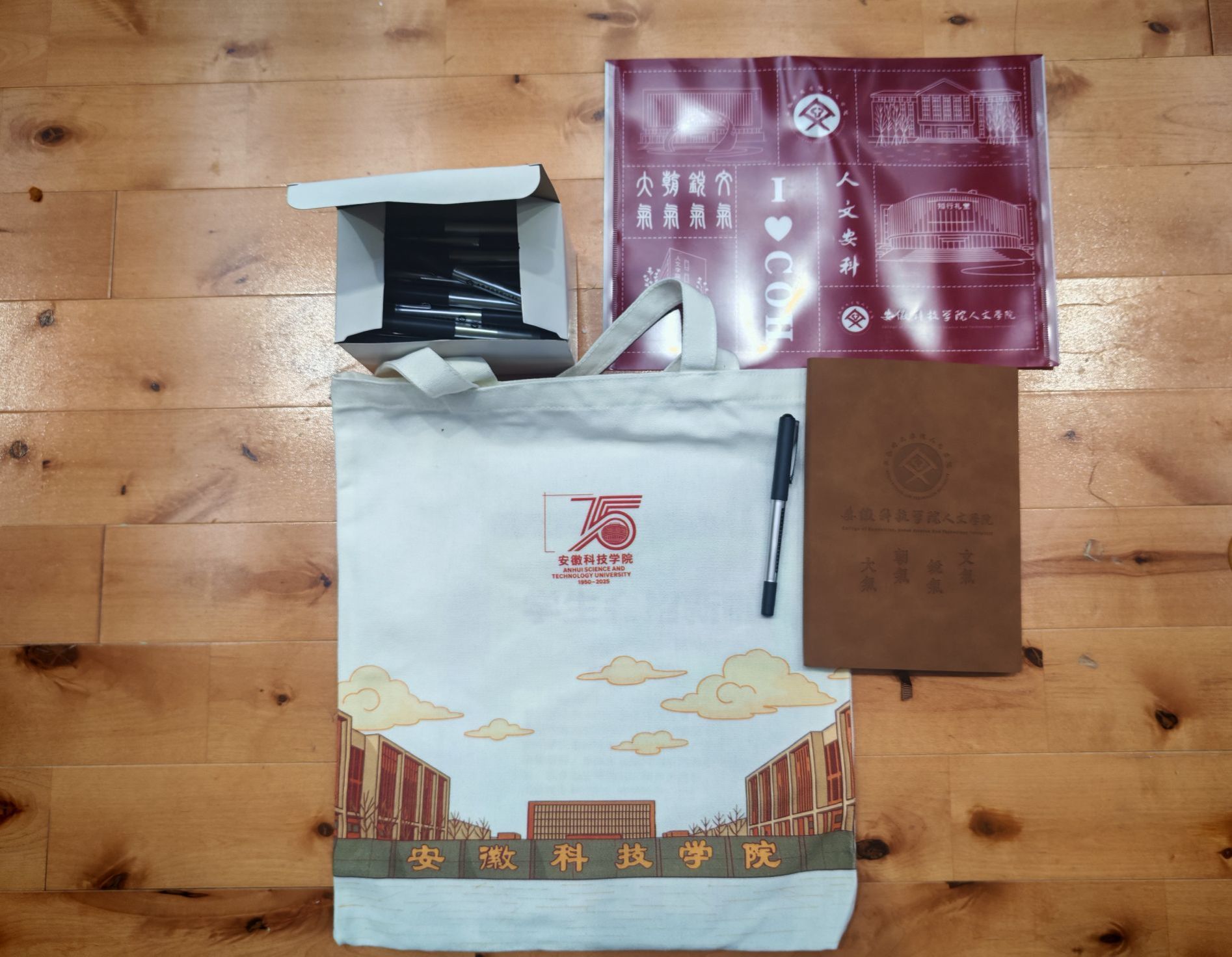 人文学院2025年迎新文创礼物,既见历史厚重,亦显青春锋芒。时绘帆布包以学校建筑为景,融入校庆标识,兼具实用性与纪念意义;人文笔记本棕色皮质封面质感十足,是承载大学思绪的“人文记忆本”;文创笔具简约的黑笔设计,于细微处彰显学院对2025级新生学习、生活的贴心关注;主题文件夹以红色为底,印有学校标志性建筑和“人文系科”标识等元素,充满人文归属感。这些文创礼物是学院送给新生的“人文初礼”,每一件都蕴含着对新生的期许与关怀。