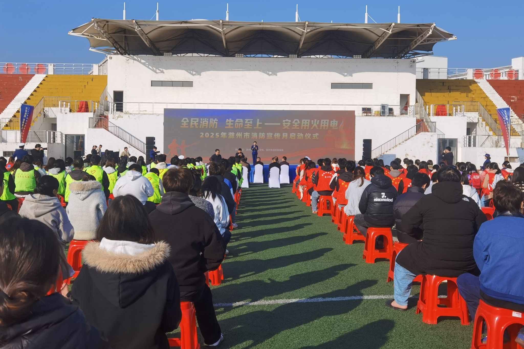 11月5日,滁州市2025年“119”消防宣传月启动仪式在滁州城市职业学院举行。市委常委、市政府常务副市长姚凯出席仪式并宣布启动,我校保卫处闻兵及40余名学生参加启动仪式。