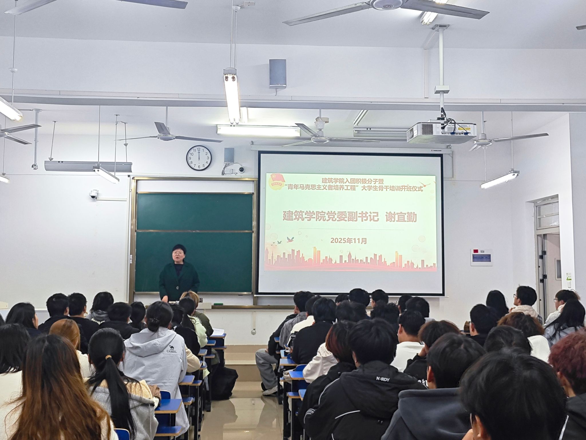 为进一步加强青年思想政治引领,推动学院共青团工作高质量发展,11月6日,建筑学院在尚行楼C201教室举行2025-2026学年入团积极分子暨“青年马克思主义者培养工程”大学生骨干培训开班仪式。建筑学院党委副书记谢宜勤、入团积极分子以及团学组织2025级新生共同参加。仪式由建筑学院团委书记沈德艳主持。