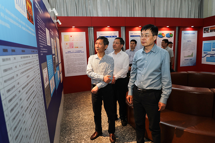 座谈会后,李震还陪同郭本纯一行实地调研考察了我校科技成果展和生物医药与健康研究院。
