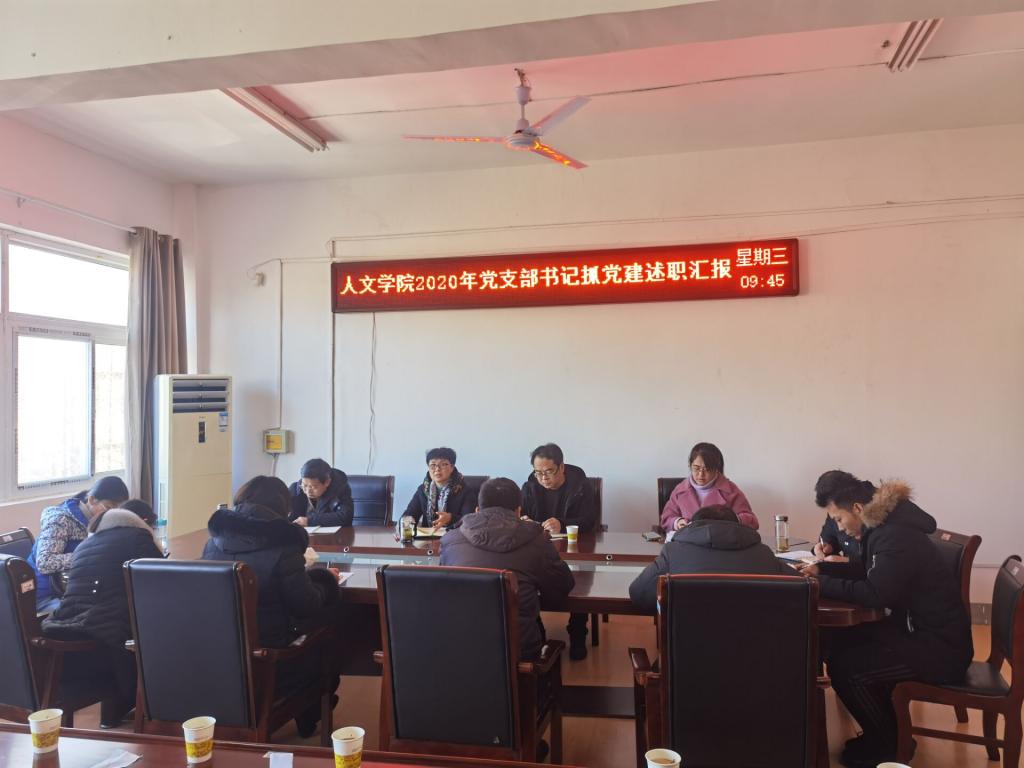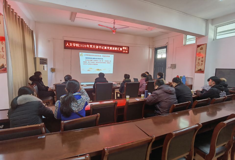 为深入学习贯彻习近平新时代中国特色社会主义思想,落实党的十九大和十九届四中、五中全会精神,坚决落实党风廉政建设各项工作要求,坚持党要管党、全面从严治党。根据《中共半岛app官方在线入口委员会关于开展2020年度基层党组织书记抓党建述职评议考核工作的通知》文件要求,人文学院于1月13日上午在学院会议室召开2020年度基层党支部书记抓党建述职评议会。学院党总支委员、党支部委员、工会主席、民主党派和无党派教师代表以及学生党员代表参加。会议由党总支书记杜士凤主持。