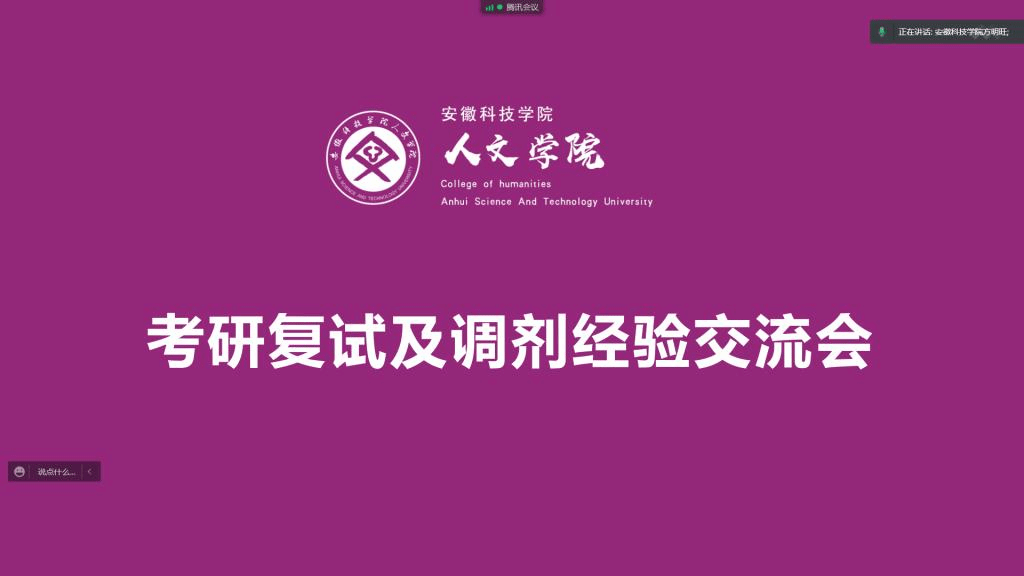 会上范雨梦老师针对调剂形势、调剂程序、调剂学校、调剂系统填报技巧和调剂系统注意事项等做了全面系统的讲解。方明旺老师以及学院2020届、2021届部分优秀考研毕业生们结合自己研究生的复试经历,从选导师、面试准备、口语能力、面试流程、注意事项方面进行了分享交流。针对学生们在复试过程中可能遇到的问题及困难,他们还结合自身复试经历做了详尽解答。