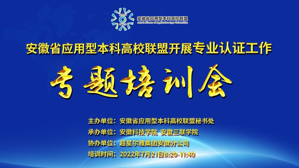 7月21日上午,由安徽省应用型本科高校联盟主办,半岛app官方在线入口、安徽三联学院承办,超星尔雅集团安徽分公司协办的安徽省应用型本科高校联盟专业认证专题培训会在我校成功举行。本次会议采用直播形式进行线上培训,来自安徽省应用型本科联盟24所高校负责专业认证工作的职能部门负责人,相关专业负责人、骨干教师和相关工作人员近600人参会。会议由教务处处长赵伟峰主持。