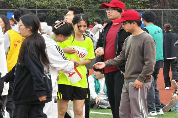 当阳光洒满校园时,志愿者们已成为一道亮丽的风景线。在运动会中,除了奋力拼搏的运动员们,默默奉献的志愿者们也是不可忽视的存在。带着红袖臂章的志愿者们,在田径场上随处可见,检录处、跑道旁、终点缓冲处……,都可以看见他们为运动会的开展发挥着属于着自己的一份力量。