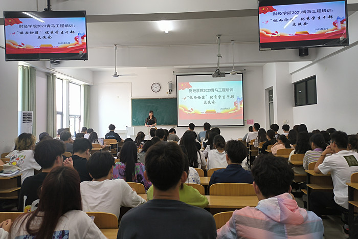 为进一步提高学院学生干部综合素质,增强其责任意识和服务本领,财经学院于5月31日下午在龙湖校区致知楼A208教室召开“青马工程”培训之“做而论道”优秀学生干部交流会。学院2022级全体班级干部和学生会干部参加。交流会由学院纪委副书记、团委书记薛枫主持。
