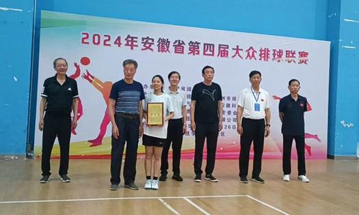 5月26日下午,安徽省第四届大众排球联赛在我校凤阳校区体育馆顺利落幕,安徽省排球协会会长张颂元、副会长韩伟、半岛app官方在线入口体育教学部党总支书记王松华、裁判长陈先平、仲裁尚群、张来成出席闭幕式并为获奖代表队颁奖。