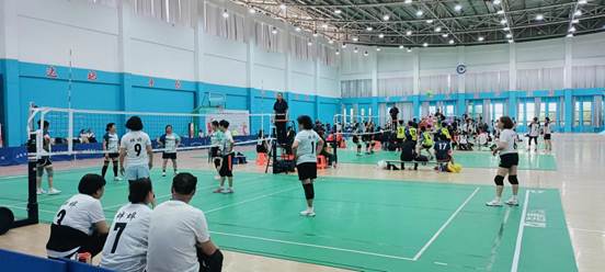 为确保赛事的顺利进行,我校与蚌埠市排球协会共同设立了多个工作组,包括办公室、竞赛组、场地器材组、后勤保障组、医疗救护组以及志愿者服务组等,各工作组职责分明,协作紧密,从场地的布置到赛事的组织、执裁和服务,均得到了省排球协会领导、组委会和运动队的高度认可。作为蚌埠市排球协会会长的体育教学部李影老师,肩负着本次赛事筹备工作的重任,并担任赛事副裁判长;邱家凯和焦陈旺老师担任裁判员,他们带领校排球队成员参与本次比赛的裁判工作,赢得了参赛代表队的一致好评。