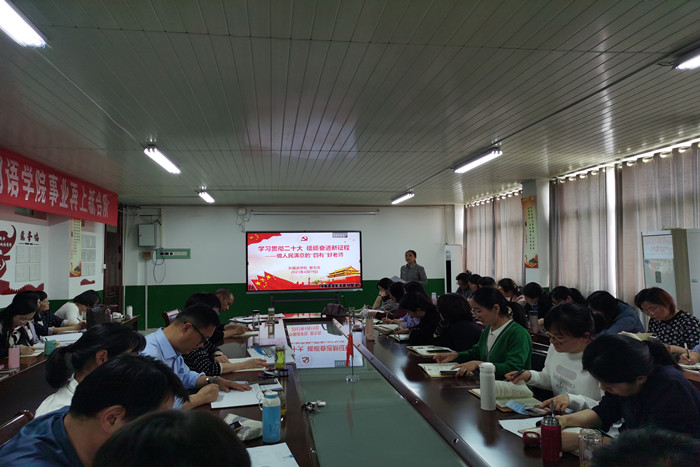 蔡为青带领教职工重温了党的二十大报告,她从党的二十大的主题,大会取得的主要成果,过去5年的工作和新时代10年的伟大变革,马克思主义中国化时代化,中国式现代化与高等教育高质量发展等九个方面,对党的二十大精神进行了解读,强调学习宣传贯彻党的二十大精神是当前和今后一个时期的首要政治任务。