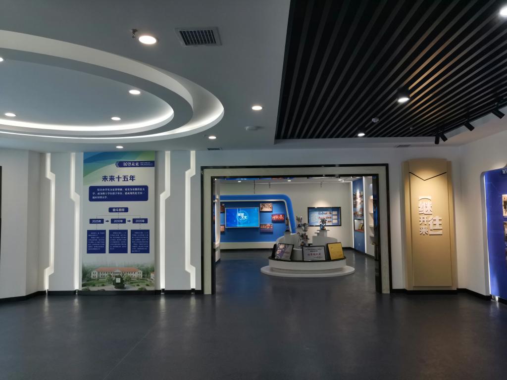 校史馆内还汇聚了大量的历史实物。这其中各个历史时期学校的办学史稿、有国家科技进步一等奖获得者黄世尧老校友的先进事迹报道原件,也有学校及广大教师、青年大学生荣获各级表彰奖励的证书、奖牌、奖章、奖杯,还有不同历史时期学校的老物件、图书馆馆藏图书以及科技创新成果实物展示等。校史馆还专题展示了学校第三次党代会描绘的“三步走”战略宏伟蓝图。这些对于师生们了解过去、把握现在、创造未来具有十分重要的意义。