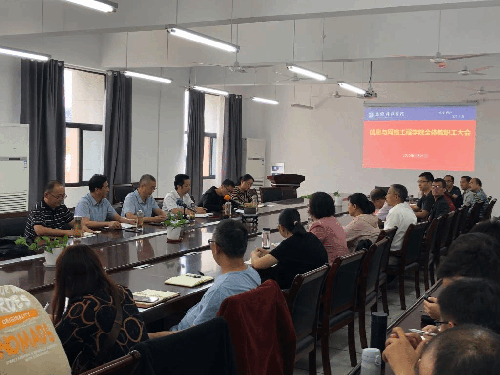 为部署推进新学期重点工作,高质量完成年度目标任务,2022年9月21日下午,学院党委副书记、院长余宏杰,正处级组织员周向群,党委副书记、纪委书记韦乃学,副院长何恩节,副院长曹浩及全体教职工参加会议,会议由院党委书记王振其主持。