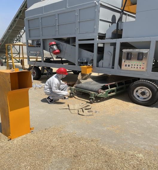 之后,志愿服务团队又随企业技术人员实地考察并测试了中储粮库包括自动化液压翻板卸粮平台、多功能复合式清粮机以及散粮输送设备在内的多种自动化进粮设备性能以及实际工作状况,认真听取并记录工作人员针对各个设备所反映的问题、期望设备具备的附加功能和产品改良的一些意见,并与相关工作人员进行深入探讨,就设备操作方法和使用过程中所遇到的问题进行详细解答。最终,研究生志愿服务团队与公司技术人员共同对粮库现场全套自动化进粮设备进了行系统维护和调整,有效解决了是施工现场和工人反映的其它相关问题。