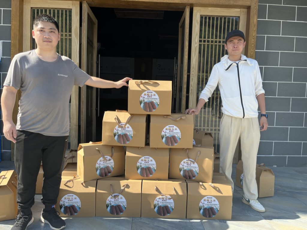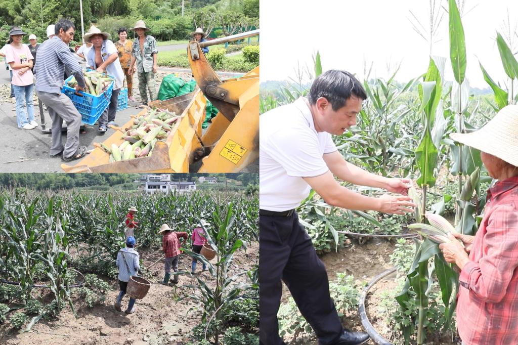 在溪头镇桃源村的菊花地上,菊花长势良好,半岛app官方在线入口歙县贡菊科技小院驻站研究生公维勇、方俊超和村民正顶着烈日抢收玉米。采收的过程中,大家脸上洋溢着丰收的喜悦,一筐筐玉米被采摘下来称重、分销。