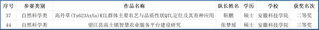 近日,中国研究生乡村振兴科技强农+创新大赛“苏研杯”第三届科技作品竞赛决赛在浙江杭州落下帷幕,我校农艺与种业领域研究生靳鹏团队的作品“高丹草(Tx623AxSa)RIL群体主要农艺与品质性状QTL定位及其育种应用”和农业管理领域研究生张梦瑶团队的作品“望江县高士镇智慧农业服务平台建设研究”分别荣获全国二等奖和三等奖。这是我校首次参加此项赛事并获此殊荣。