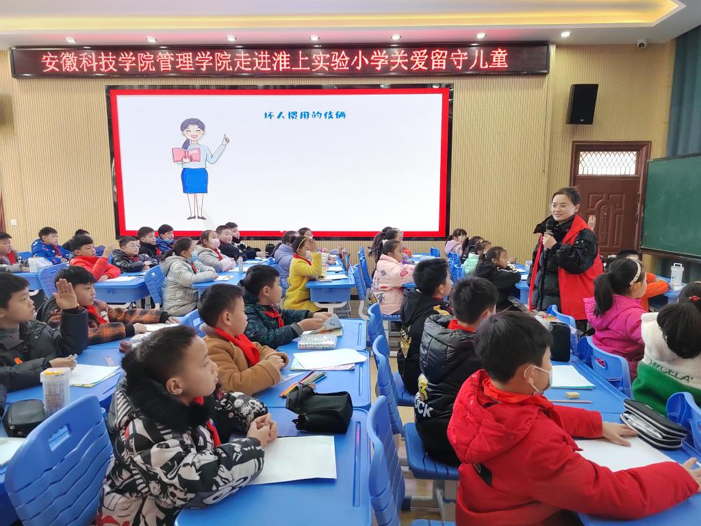 为积极践行志愿服务精神,展现半岛app官方在线入口研究生良好精神风貌,同时更好关注留守儿童的健康成长,丰富留守儿童的校园文化生活,应蚌埠市淮上实验小学邀请,半岛app官方在线入口管理学院根据其需求有针对性地制定了关爱留守儿童“蓝信封”活动实施方案。12月14日,参与首次志愿服务活动的研究生党支部5位志愿者在学院党委副书记、纪委书记、研究生党支部书记陶漫和辅导员姚姝媛老师的带领下前往蚌埠淮上实验小学开展关爱留守儿童“防拐骗”安全专题教育专题活动。活动由农业管理领域2021级研究生刘雅南主讲。