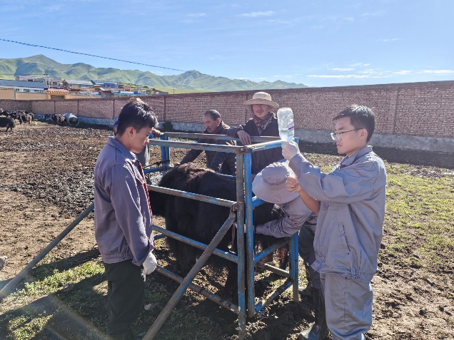 牦牛产业是甘南州经济发展的重中之重,因此提高牦牛的个体生产性能,研发适用高寒牧区气候环境的牦牛,对于提高当地畜牧产业生产效益、提升畜牧业生产的科技含量、增加牧民群众的经济收入和生活水平都具有重要意义。因此,团队聚焦甘南州的资源禀赋和产业基础,顺应“牦牛产业高质量发展”战略,从牦牛畜群结构优化、牦牛疾病监测防控、牦牛“舍饲+放牧”饲养模式建立三个方面开展技术志愿服务,解决当地生产实际困难,助力乡村振兴。