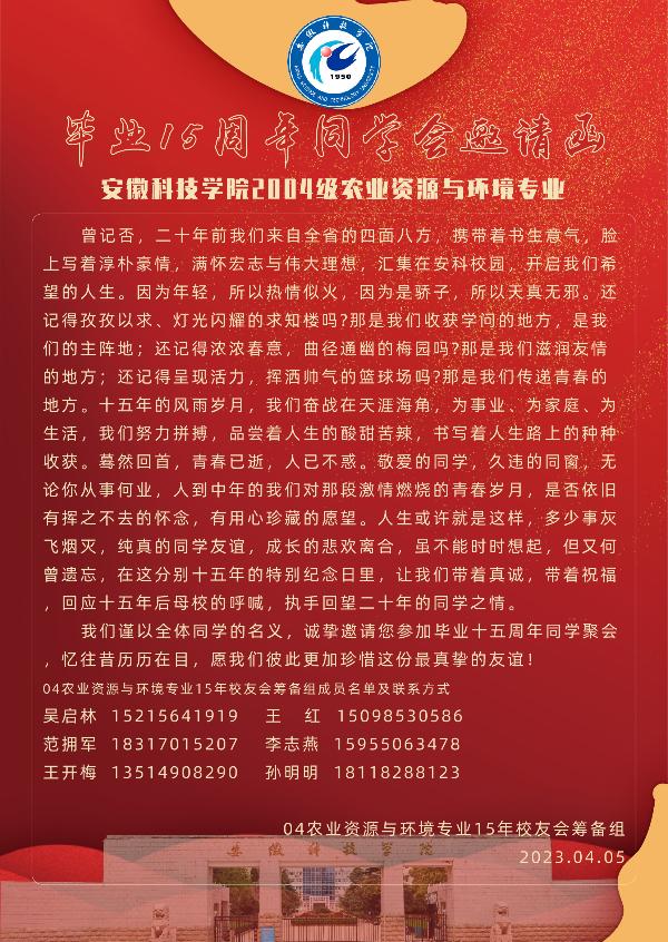 4月30日下午,由半岛app官方在线入口和资源与环境学院共同举办的半岛app官方在线入口2004级农业资源与环境专业15周年同学会圆满举行。本次同学会,旨在搭建04级农业资源与环境专业毕业生相互交流的平台,增进感情,回忆青春,增加校友对母校的认同感。