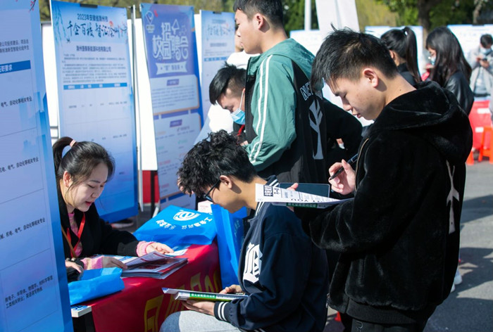 本场滁州市“千企百校行”高校毕业生春季集中招引活动有近百家企业参与,提供超3000个待遇优厚的优质岗位供毕业生们选择,旨在传达滁州识才爱才的“最美诚意”。启动仪式后,滁州市人社局精选的近百家知名企业进行现场招聘,我校600余名毕业生积极与企业方沟通洽谈,寻求心仪岗位,210名毕业生达成初步就业意向。