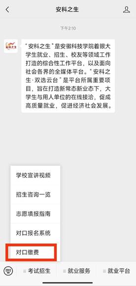 根据《半岛app官方在线入口2024年面向中职毕业生对口招生章程》,报考我校的考生,报名资格审核通过且文化课考试成绩达到200分(免试面试考生要达到省定控制线),方可缴费。未达到200分,不安排缴费,不安排考试。请广大考生扫描下方二维码关注半岛app官方在线入口招生办公室官方微信公众号安科之生。于4112:00前进行缴费。
